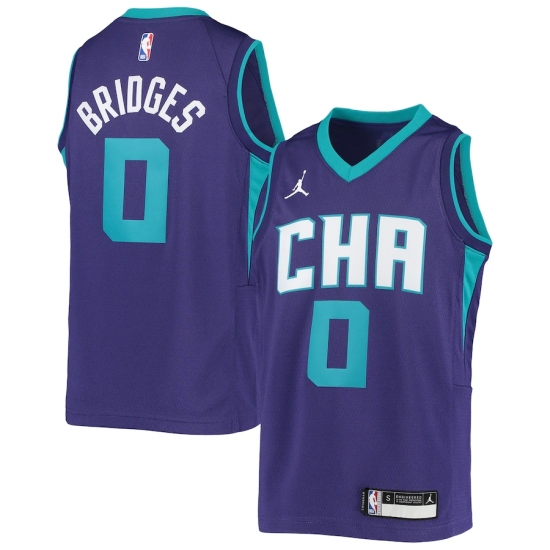 >Youth Charlotte Hornets #0 Miles Bridges Jordan Brand Purple 2020-21 Swingman Jersey