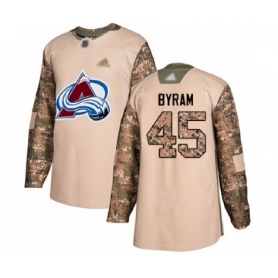>Youth Colorado Avalanche #45 Bowen Byram Authentic Camo Veterans Day Practice Hockey Jersey
