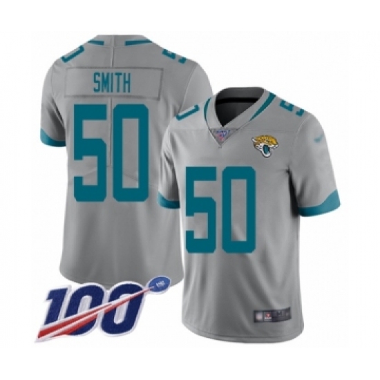 >Youth Jacksonville Jaguars #50 Telvin Smith Silver Inverted Legend Limited 100th Season Football Jersey