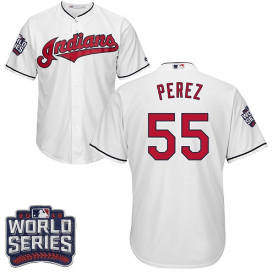 Home>MLB>Cleveland Indians>Roberto Perez>Youth Majestic Cleveland Indians #55 Roberto Perez Authentic White Home 2016 World Series Bound Cool Base MLB Jersey