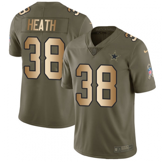 Home>NFL>Dallas Cowboys>Jeff Heath>Youth Nike Dallas Cowboys #38 Jeff Heath Limited Olive/Gold 2017 Salute to Service NFL Jersey