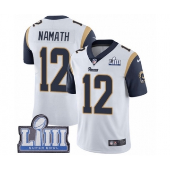 Youth Nike Los Angeles Rams #12 Joe Namath White Vapor Untouchable Limited Player Super Bowl LIII Bound NFL Jersey