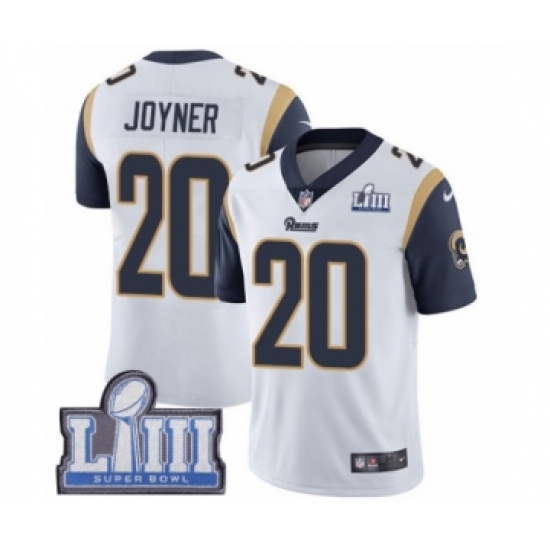 >Youth Nike Los Angeles Rams #20 Lamarcus Joyner White Vapor Untouchable Limited Player Super Bowl LIII Bound NFL Jersey