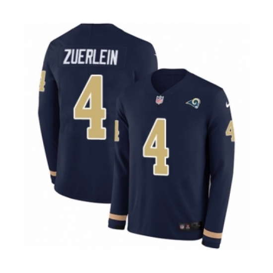 >Youth Nike Los Angeles Rams #4 Greg Zuerlein Limited Navy Blue Therma Long Sleeve NFL Jersey