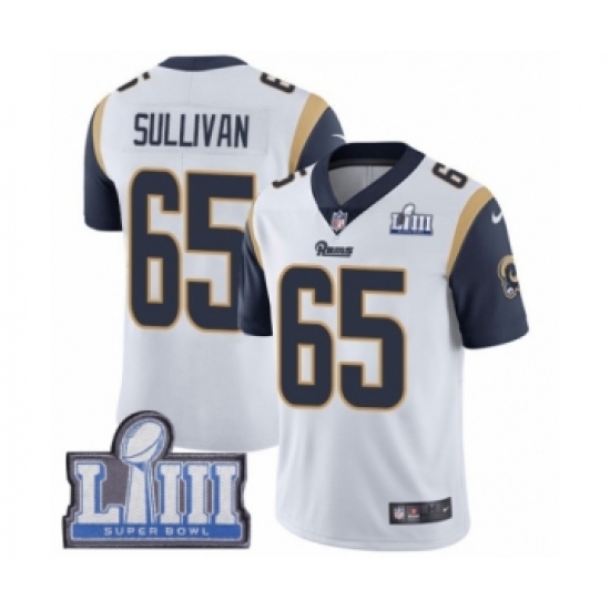 Youth Nike Los Angeles Rams #65 John Sullivan White Vapor Untouchable Limited Player Super Bowl LIII Bound NFL Jersey