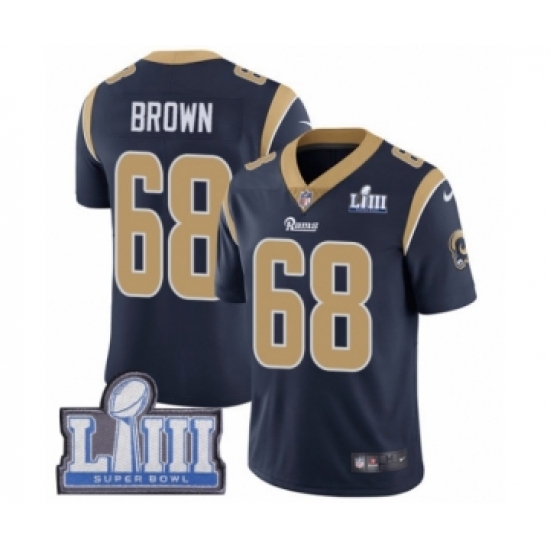 Youth Nike Los Angeles Rams #68 Jamon Brown Navy Blue Team Color Vapor Untouchable Limited Player Super Bowl LIII Bound NFL Jersey