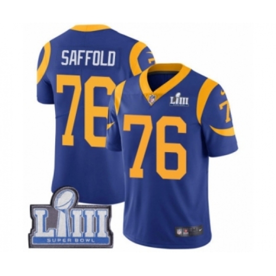 Men's Nike Los Angeles Rams #76 Rodger Saffold Royal Blue Alternate Vapor Untouchable Limited Player Super Bowl LIII Bound NFL Jersey