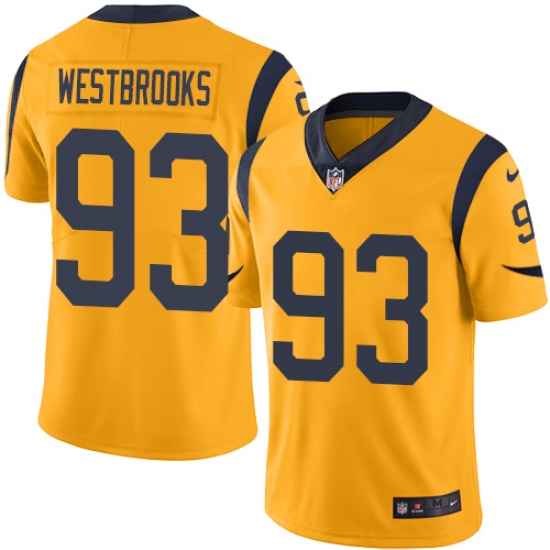 Home>NFL>Los Angeles Rams>Ethan Westbrooks>Youth Nike Los Angeles Rams #93 Ethan Westbrooks Limited Gold Rush Vapor Untouchable NFL Jersey