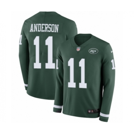 >Youth Nike New York Jets #11 Robby Anderson Limited Green Therma Long Sleeve NFL Jersey