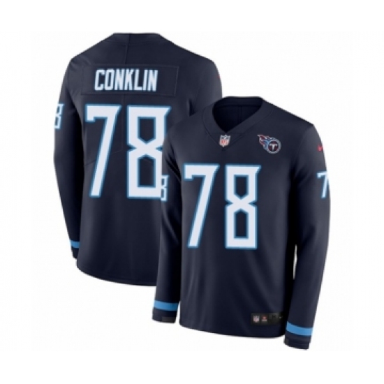 >Youth Nike Tennessee Titans #78 Jack Conklin Limited Navy Blue Therma Long Sleeve NFL Jersey