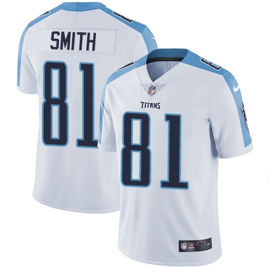 Home>NFL>Tennessee Titans>Jonnu Smith>Youth Nike Tennessee Titans #81 Jonnu Smith White Vapor Untouchable Limited Player NFL Jersey