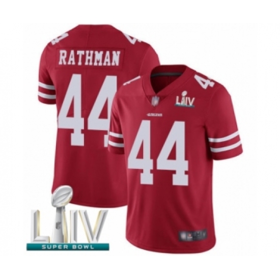 >Youth San Francisco 49ers #44 Tom Rathman Red Team Color Vapor Untouchable Limited Player Super Bowl LIV Bound Football Jersey