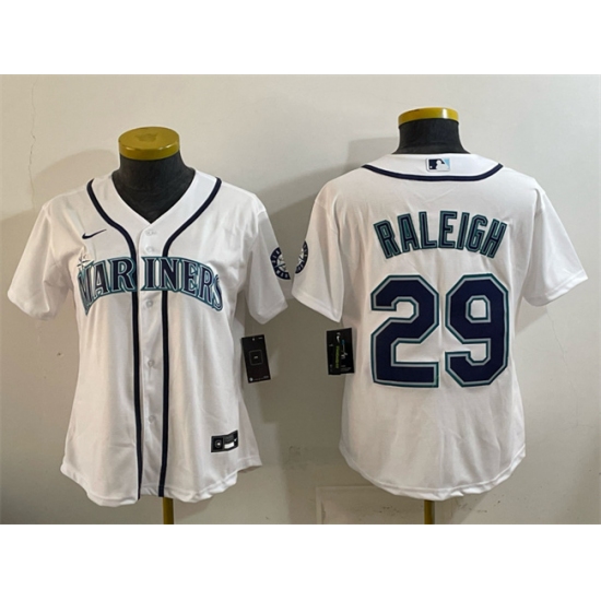 Women's Seattle Mariners #29 Cal Raleigh White Cool Base Stitched Baseball Jersey(Run Small)