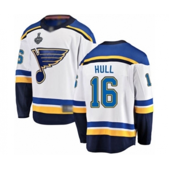 >Youth St. Louis Blues #16 Brett Hull Fanatics Branded White Away Breakaway 2019 Stanley Cup Final Bound Hockey Jersey