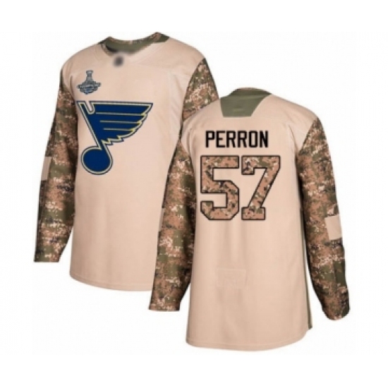 >Youth St. Louis Blues #57 David Perron Authentic Camo Veterans Day Practice 2019 Stanley Cup Champions Hockey Jersey
