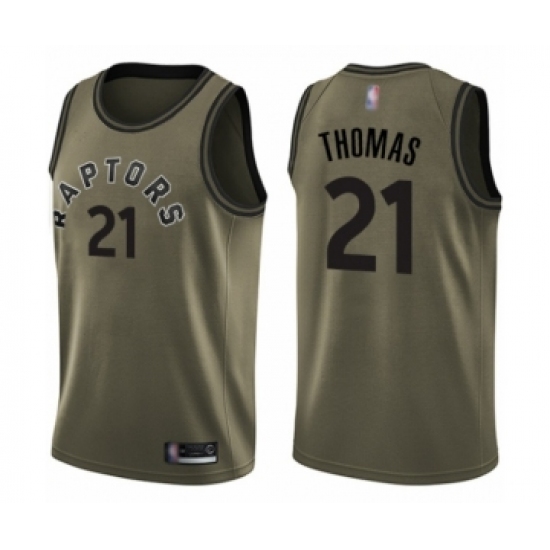 >Youth Toronto Raptors #21 Matt Thomas Swingman Green Salute to Service Basketball Jersey