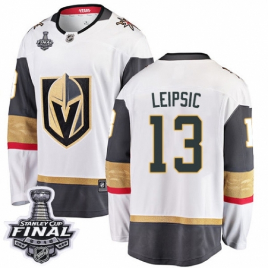 >Youth Vegas Golden Knights #13 Brendan Leipsic Authentic White Away Fanatics Branded Breakaway 2018 Stanley Cup Final NHL Jersey