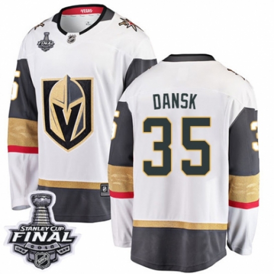 Men's Adidas Vegas Golden Knights #35 Oscar Dansk Authentic White Away 2018 Stanley Cup Final NHL Jersey