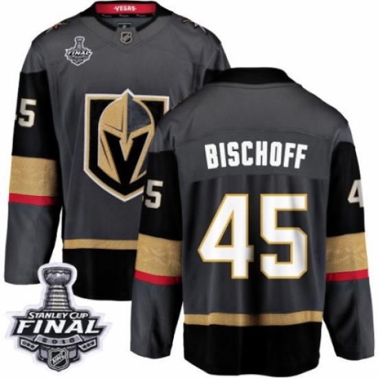 >Youth Vegas Golden Knights #45 Jake Bischoff Authentic Black Home Fanatics Branded Breakaway 2018 Stanley Cup Final NHL Jersey