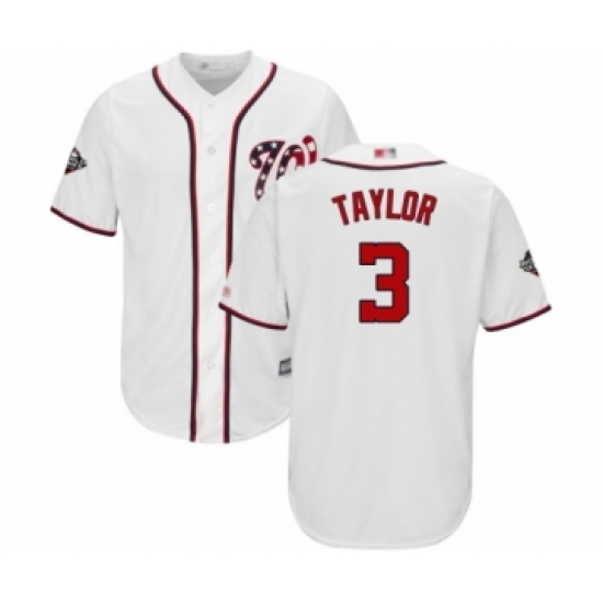 >Youth Washington Nationals #3 Michael Taylor Authentic White Home Cool Base 2019 World Series Bound Baseball Jersey