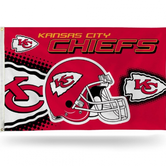 2Pcs NFL Kansas City Chiefs Helmet 3-Foot by 5-Foot Single Sided Banner Flag with Grommets