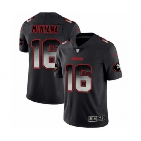 Men San Francisco 49ers #16 Joe Montana Black Smoke Fashion Limited Jersey
