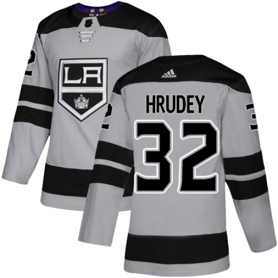 >Men's Adidas Los Angeles Kings #32 Kelly Hrudey Premier Gray Alternate NHL Jersey