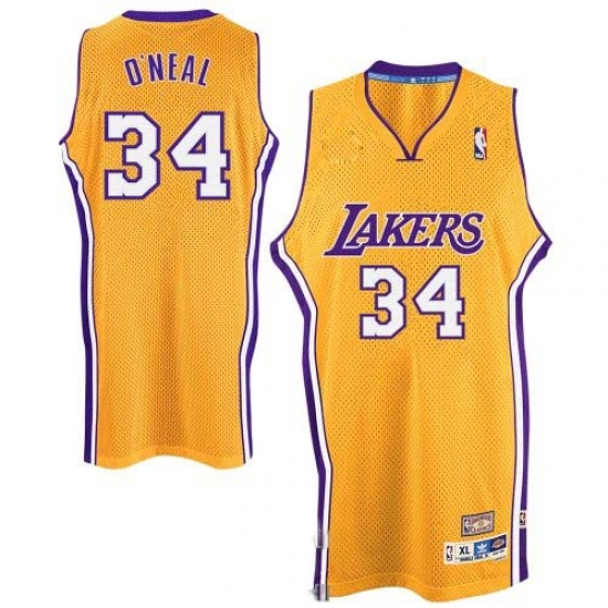 Men's Adidas Los Angeles Lakers #34 Shaquille O'Neal Authentic Gold Throwback NBA Jersey
