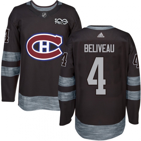 Men's Adidas Montreal Canadiens #4 Jean Beliveau Premier Black 1917-2017 100th Anniversary NHL Jersey