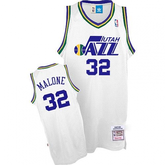 Men's Adidas Utah Jazz #32 Karl Malone Swingman White Throwback NBA Jersey