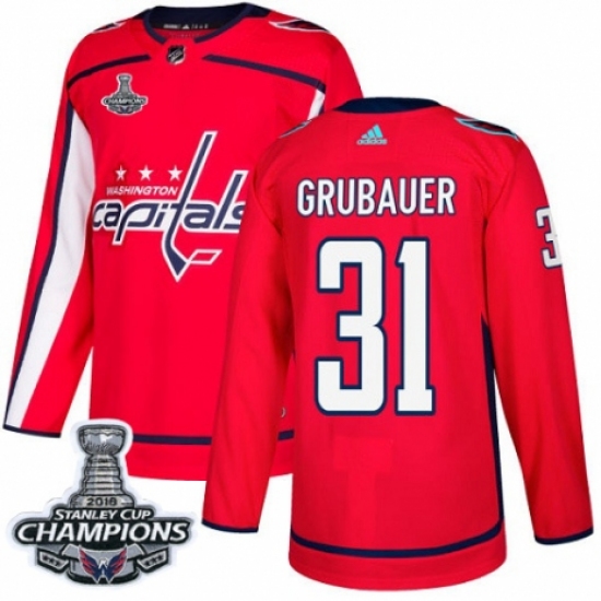 Men's Adidas Washington Capitals #31 Philipp Grubauer Authentic Red Home 2018 Stanley Cup Final Champions NHL Jersey