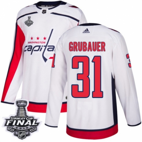 Men's Adidas Washington Capitals #31 Philipp Grubauer Authentic White Away 2018 Stanley Cup Final NHL Jersey