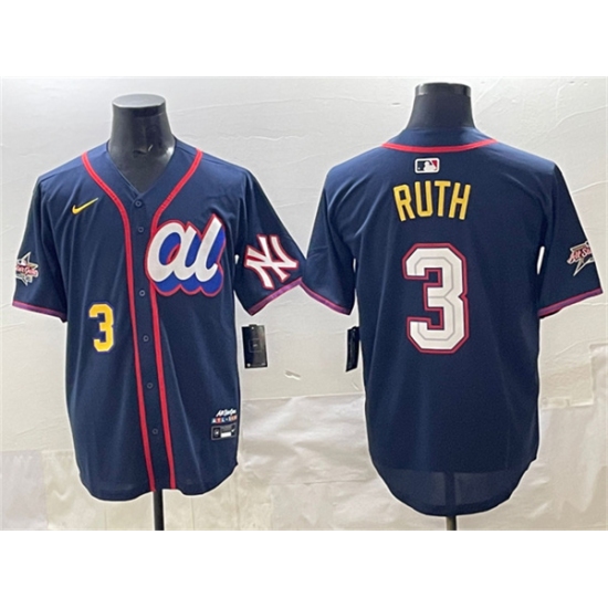 >Men's American League #3 Babe Ruth Navy 2025 All-Star Edition Limited Stitched Baseball Jersey