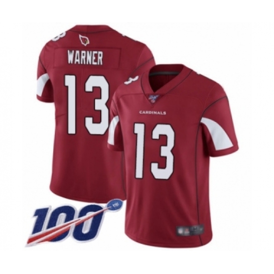 Men's Arizona Cardinals #13 Kurt Warner Red Team Color Vapor Untouchable Limited Player 100th Season Football Jersey