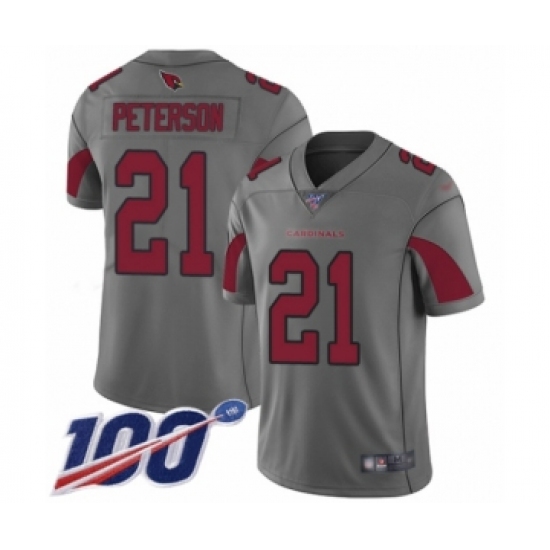 Men's Arizona Cardinals #21 Patrick Peterson Limited Silver Inverted Legend 100th Season Football Jersey