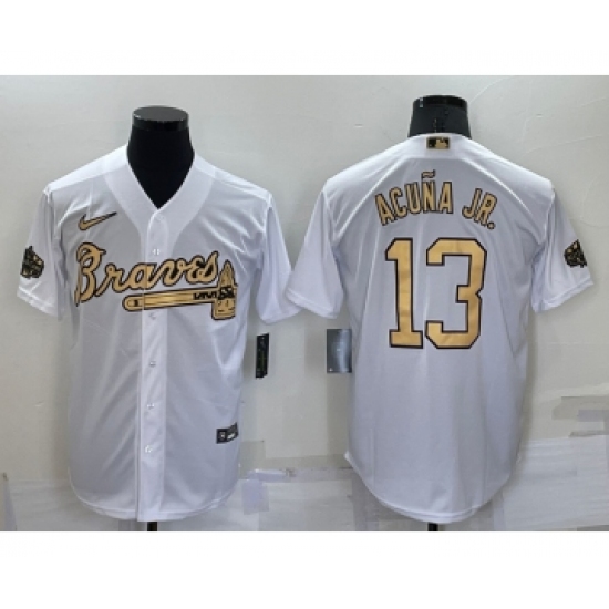 Men's Atlanta Braves #13 Ronald Acuna Jr White 2022 All Star Stitched Cool Base Nike Jersey