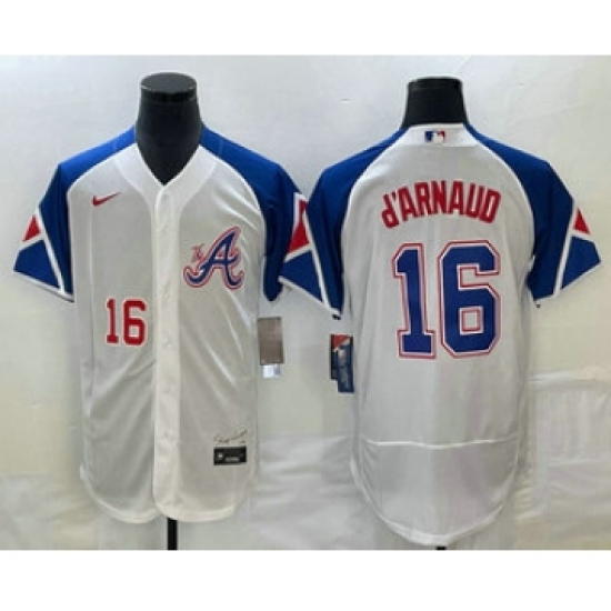 >Men's Atlanta Braves #16 Travis dArnaud Number White 2023 City Connect Flex Base Stitched Jersey