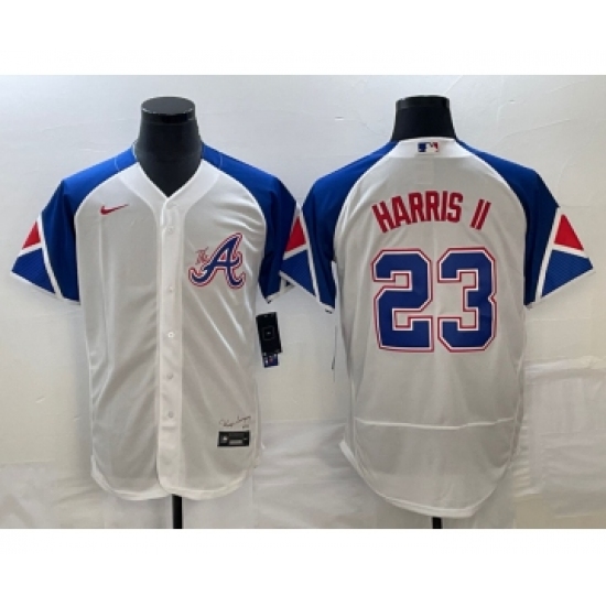 >Men's Atlanta Braves #23 Michael Harris II White 2023 City Connect Flex Base Stitched Baseball Jersey