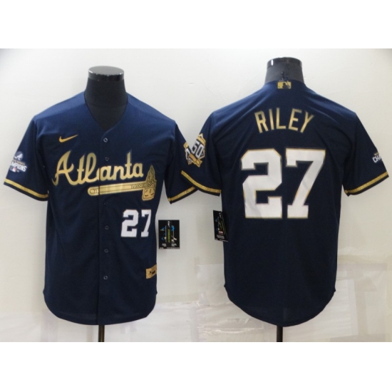 Men's Atlanta Braves #27 Austin Riley Navy 2022 Gold Program Authentic Player Jersey