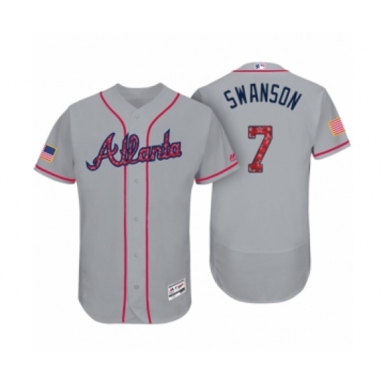 >Men's Atlanta Braves #7 Dansby Swanson Gray 2017 Independence Day Flex Base Jersey
