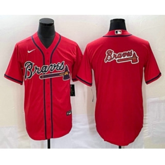 Men's Atlanta Braves Red Team Big Logo Cool Base Stitched Baseball Jersey