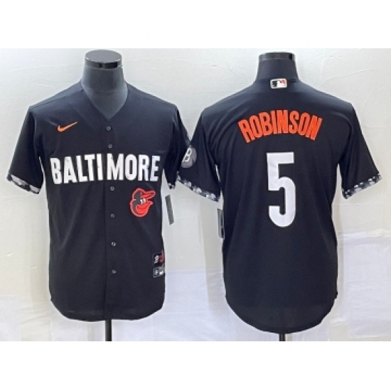 Men's Baltimore Orioles #5 Brooks Robinson Black 2023 City Connect Cool Base Stitched Jersey 1