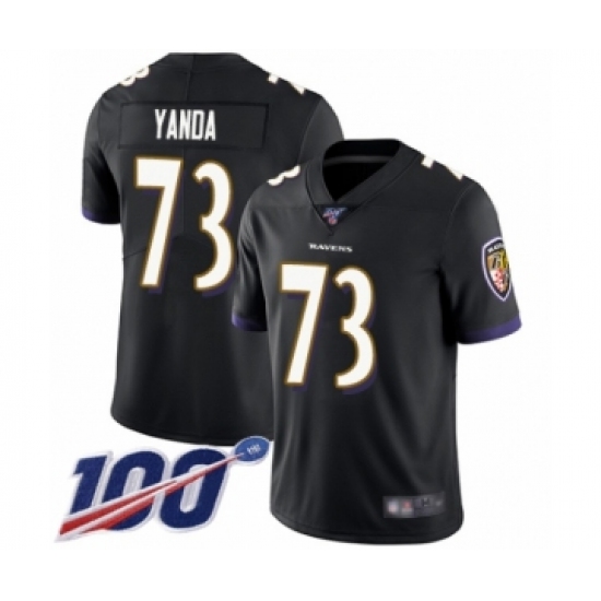 Men's Baltimore Ravens #73 Marshal Yanda Black Alternate Vapor Untouchable Limited Player 100th Season Football Jersey