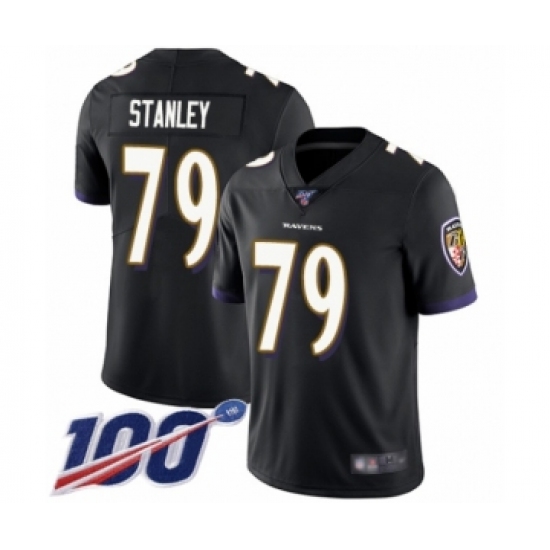 >Men's Baltimore Ravens #79 Ronnie Stanley Black Alternate Vapor Untouchable Limited Player 100th Season Football Jersey