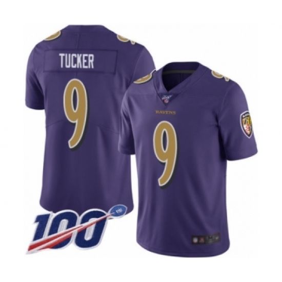 Men's Baltimore Ravens #9 Justin Tucker Limited Purple Rush Vapor Untouchable 100th Season Football Jersey