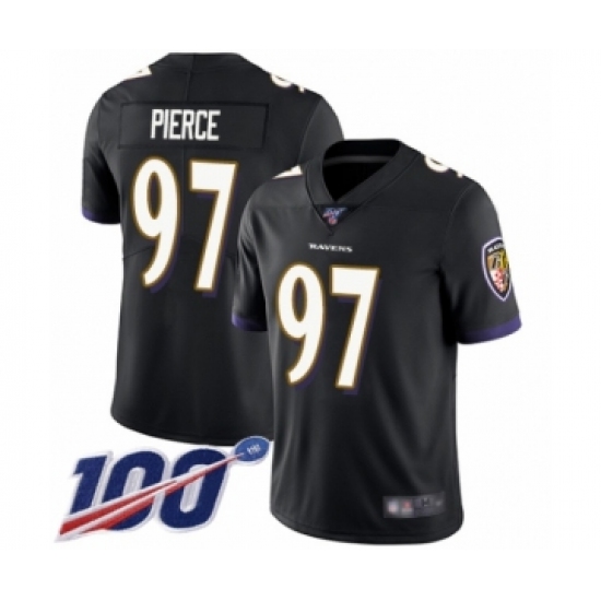 >Men's Baltimore Ravens #97 Michael Pierce Black Alternate Vapor Untouchable Limited Player 100th Season Football Jersey