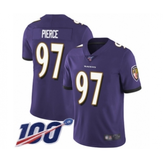 Men's Baltimore Ravens #97 Michael Pierce Purple Team Color Vapor Untouchable Limited Player 100th Season Football Jersey