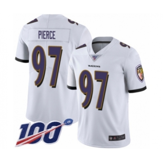 Men's Baltimore Ravens #97 Michael Pierce White Vapor Untouchable Limited Player 100th Season Football Jersey