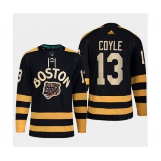 Men's Boston Bruins #13 Charlie Coyle Authentic Black 1917-2017 100th Anniversary Hockey Jersey