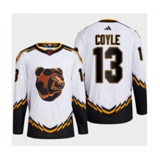 Men's Boston Bruins #13 Charlie Coyle White 2022-23 Reverse Retro Stitched Jersey